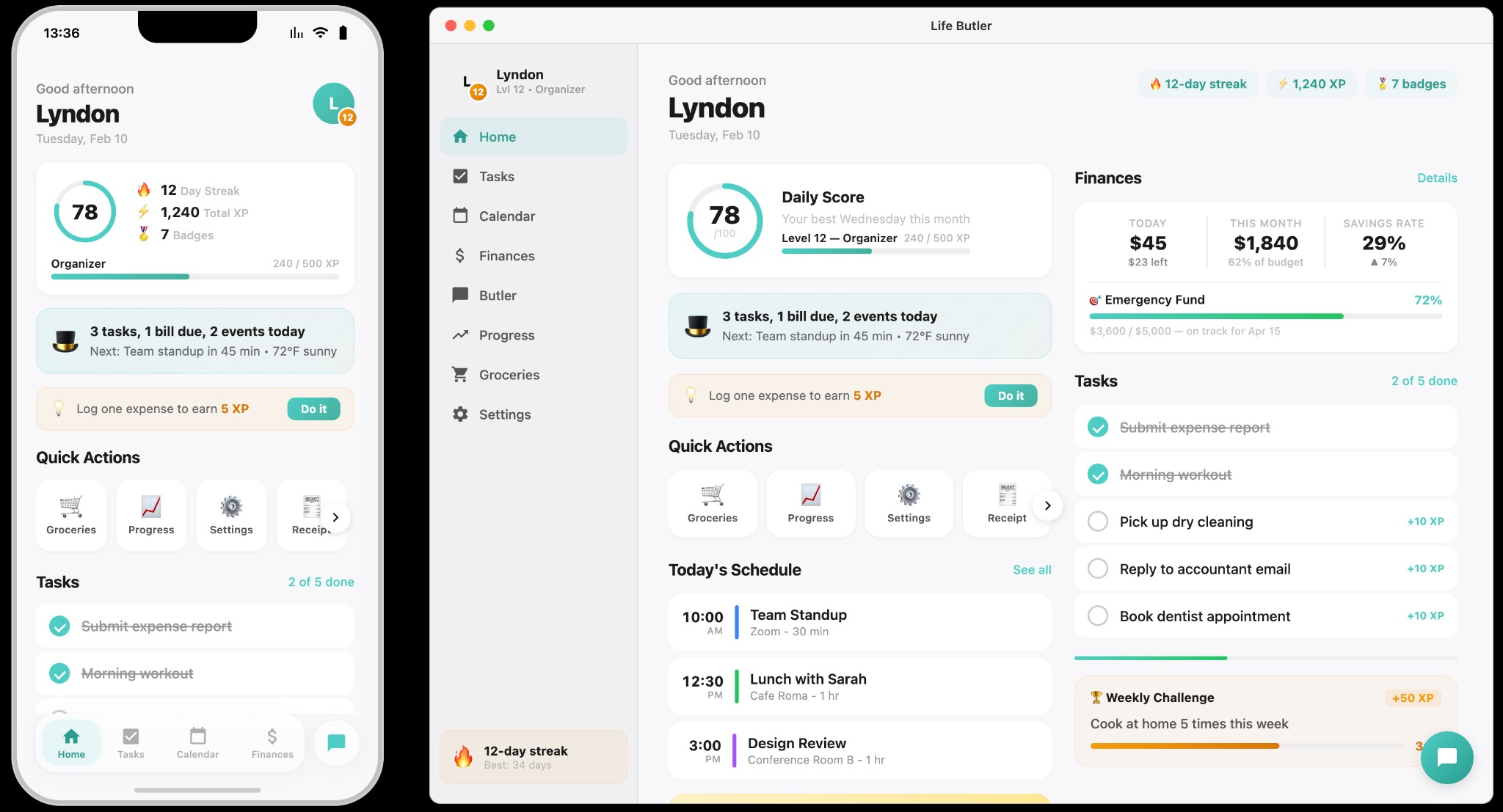 Built-in Butlers for money, health, travel, goals, and more. Third-party Butlers extend the ecosystem. Everything works together.