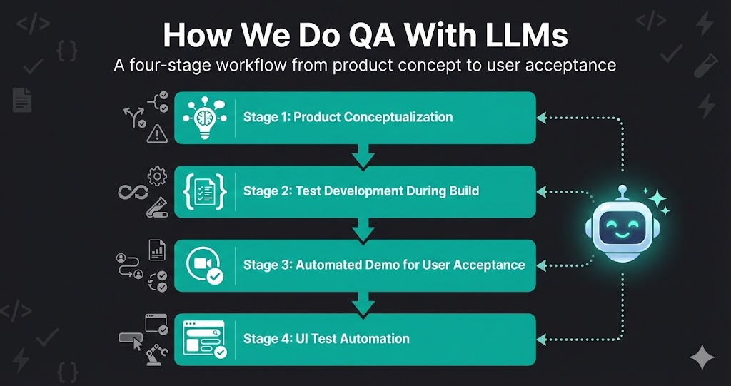 Most bugs aren’t coding errors — they’re design flaws that weren’t caught early enough. That’s why we start QA at the product conceptualization level, using LLMs to think through problems before they become code.